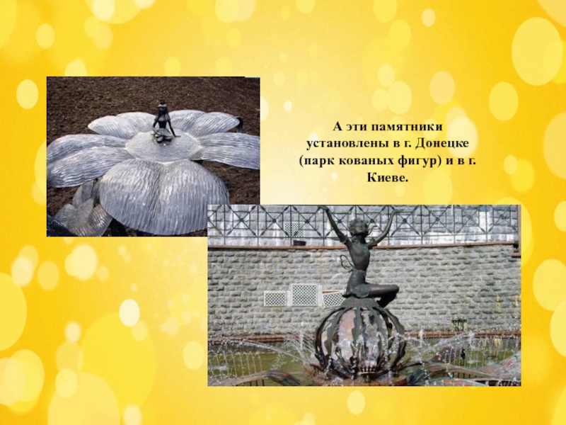 В городе Сочи в 2006 г. была установлена скульптура Дюймовочки на центральной аллее парка. Скульпторы - В.Звонов и А.Бутаев. Милая Дюймовочка с крыльями, подаренными ей Эльфом, сразу полюбилась посетителям парка.