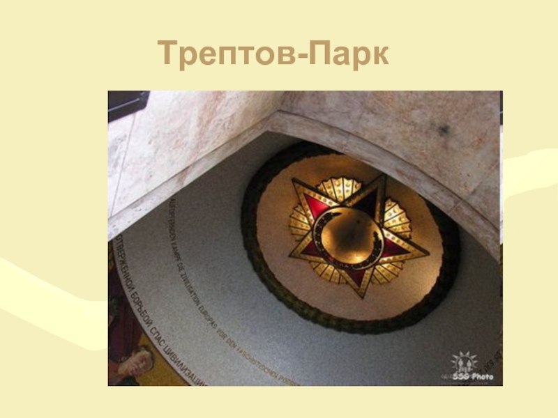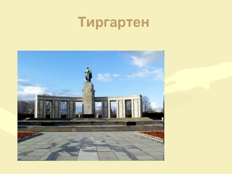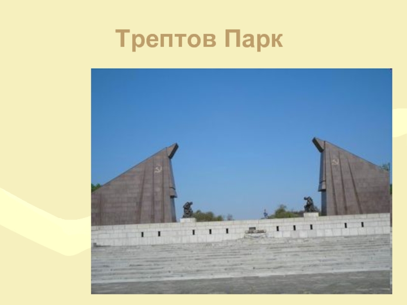 Слайд 4Всемирно известный мемориальный комплекс в Трептов-парке, где похоронены около пяти тысяч