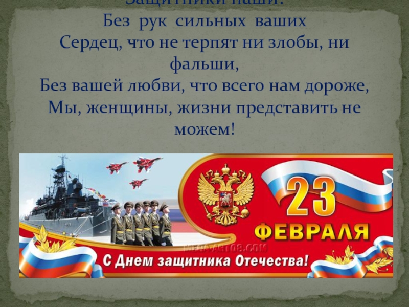 Слайд 10Защитники наши! Без рук сильных ваших Сердец, что не терпят ни злобы,