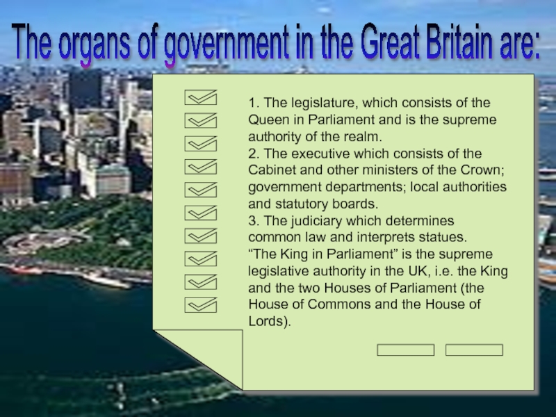 The organs of government in the Great Britain are: