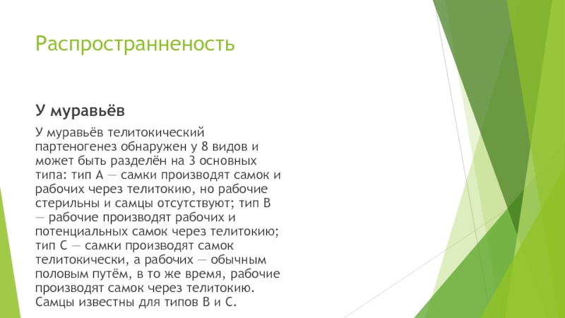 У муравьёв телитокический партеногенез обнаружен у 8 видов и может