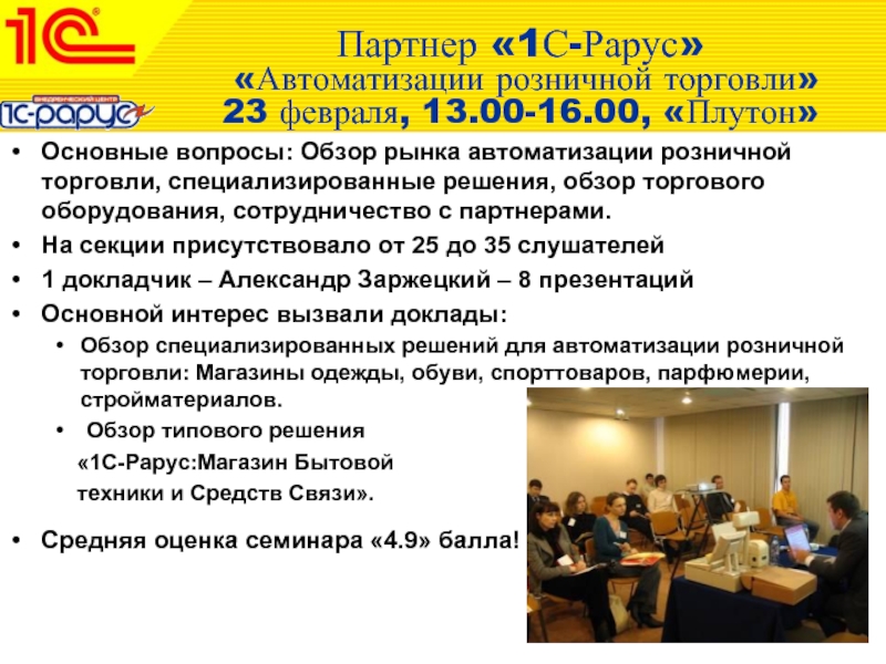 Средняя оценка семинара «4.7» балла.