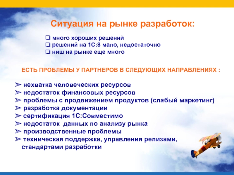 ЕСТЬ ПРОБЛЕМЫ У ПАРТНЕРОВ В СЛЕДУЮЩИХ НАПРАВЛЕНИЯХ :