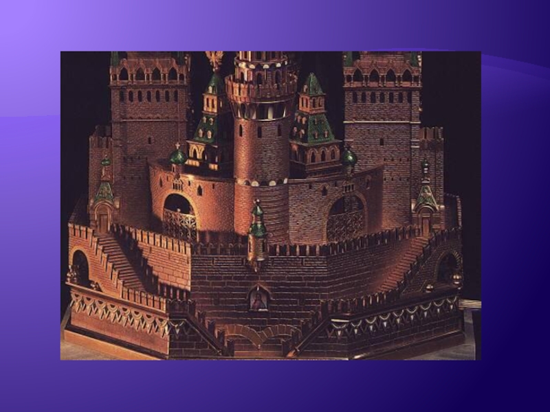 окнами навеян архитектурой Успенского собора Московского Кремля. В одно из застекленных окон виден интерьер собора, изображенный на овальной стеклянной пластине, находящейся внутри модели. На круглой золотой накладке, закрепленной на яйце снизу, белой эмалью исполнена дата (1904). Подставка, выполненная из цветного золота и серебра, имеет вид стилизованных кремлевских стен и башен с кровлями, покрытыми зеленой прозрачной эмалью. На повторенной дважды Спасской башне изображены эмалью гербы Российской империи и Москвы, над воротами в киотах - миниатюрные иконы "Богоматерь Казанская" и "Христос-Вседержитель". Восьмигранное основание выполнено из оникса. Внутрь модели помещен музыкальный механизм, который заводится золотым ключом, после чего звучат две "херувимские" песни - праздничные пасхальные гимны. Это пасхальное яйцо было сделано в память пребывания царя с царицей в Первопрестольной златоглавой столице во время празднования Пасхи в 1903 году, что с энтузиазмом было воспринято всем русским обществом и, в особенности, москвичами. Выполняя это необычайное по замыслу произведение, мастера фирмы Фаберже стремились создать образ древнего Кремля - одновременно величественного и сказочно - нарядного. Перед нами своеобразная, виртуозная вариация на тему кремлевской архитектуры.