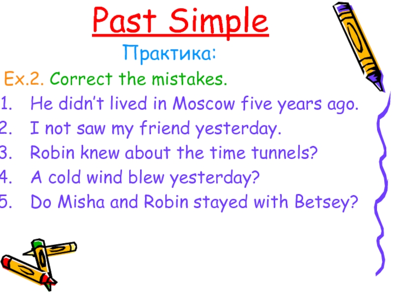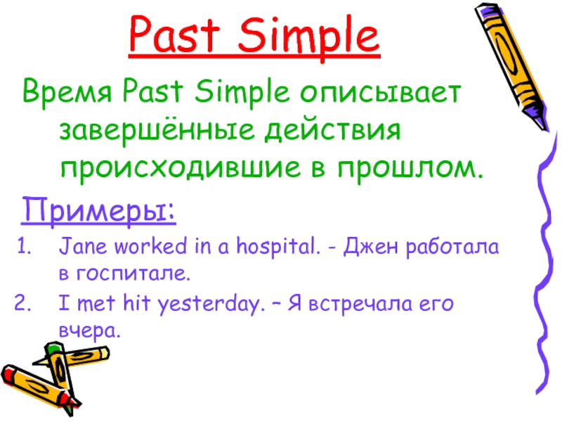 Время Past Simple описывает завершённые действия происходившие в прошлом.