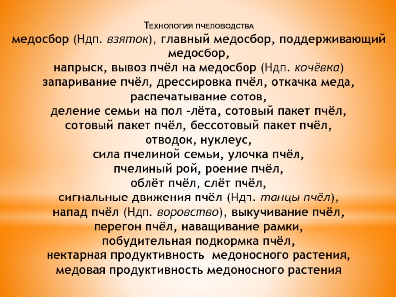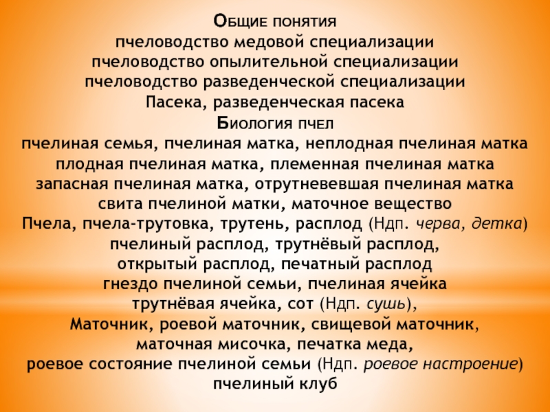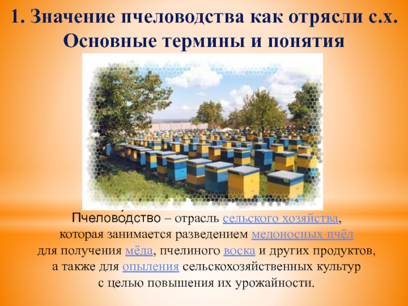 Слайд 31. Значение пчеловодства как отрясли с.х. Основные термины и понятия