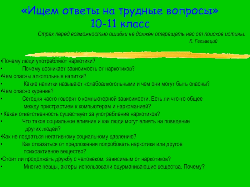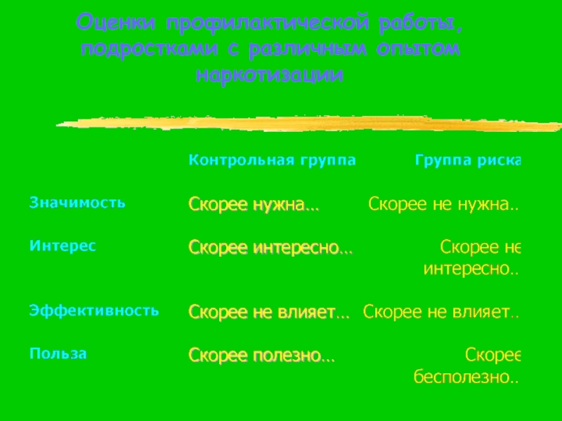 формирование негативного отношения ко всем формам наркотизма как псевдоэффективным