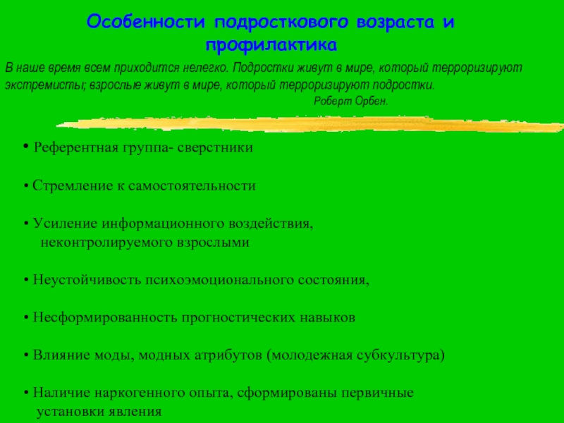 предупреждение приобщения детей и подростков к любым формам наркотизации