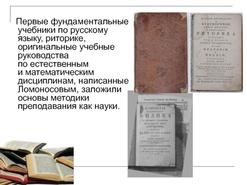 по естественным и математическим дисциплинам, написанные Ломоносовым, заложили основы методики преподавания как науки.