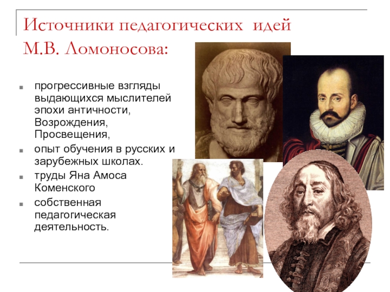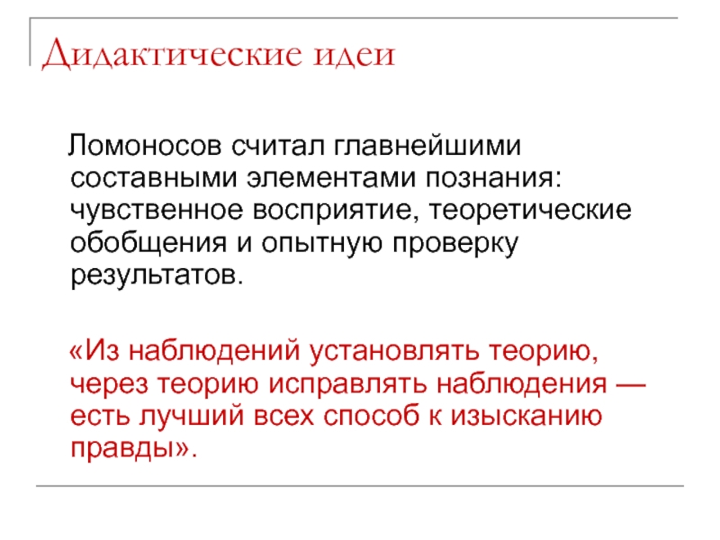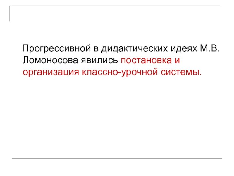 Слайд 14 Прогрессивной в дидактических идеях М.В. Ломоносова явились постановка и