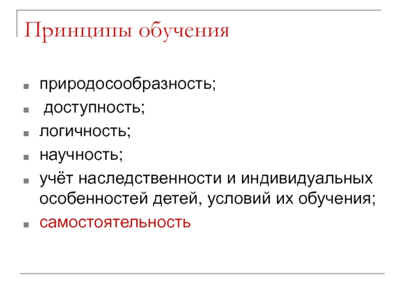 учёт наследственности и индивидуальных особенностей детей, условий их обучения;