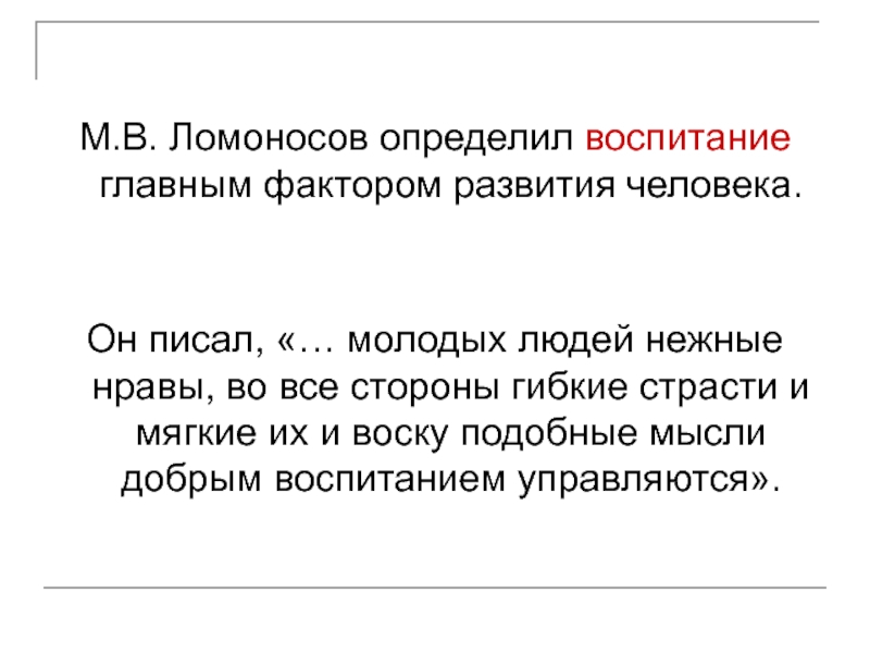 М.В. Ломоносов определил воспитание главным фактором развития человека.