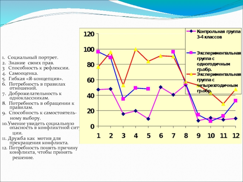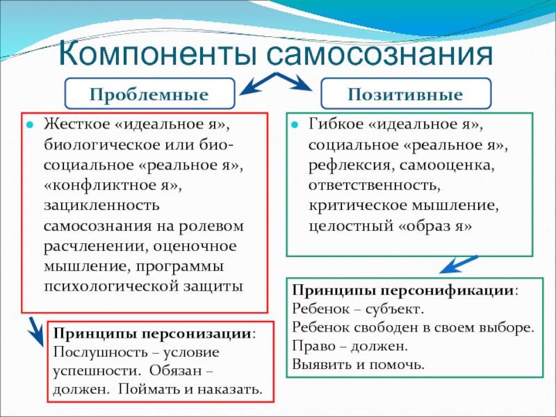 Гибкое «идеальное я», социальное «реальное я», рефлексия, самооценка, ответственность, критическое мышление, целостный «образ я»