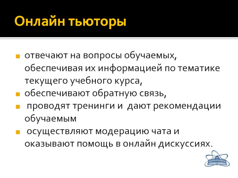 отвечают на вопросы обучаемых, обеспечивая их информацией по тематике текущего