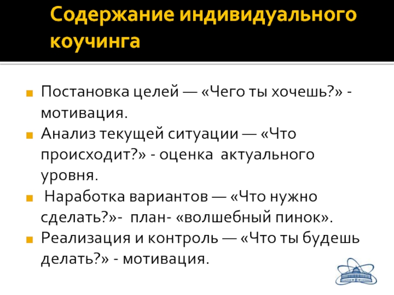 Коучинг (англ. coaching — обучение, тренировки)- это система реализации совместного социального, личностного и