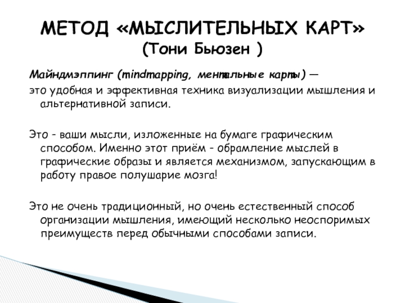 МЕТОД «МЫСЛИТЕЛЬНЫХ КАРТ»