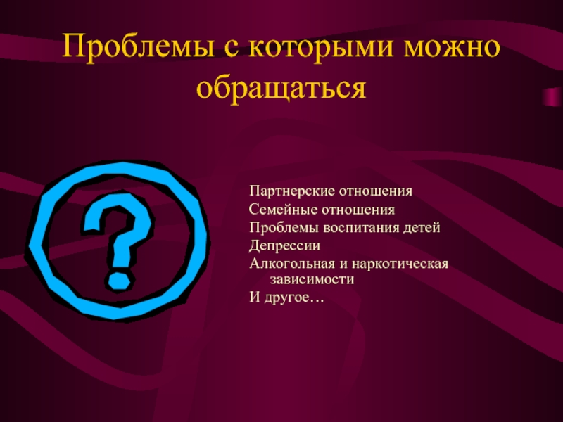 Слайд 3Проблемы с которыми можно обращаться