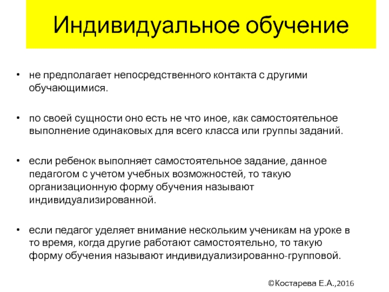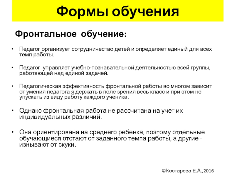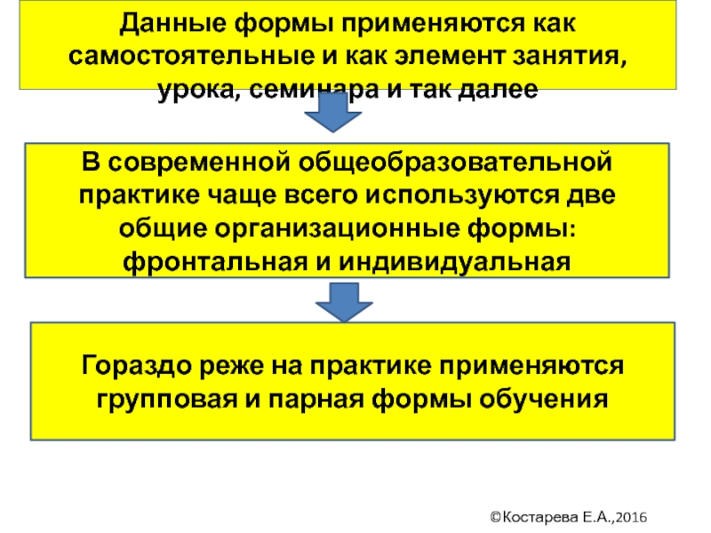 В современной общеобразовательной практике чаще всего используются две общие организационные формы: фронтальная и индивидуальная
