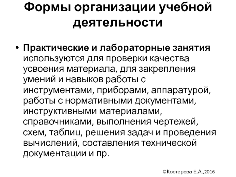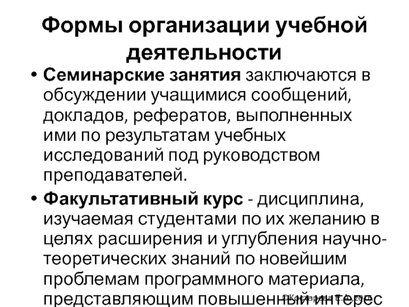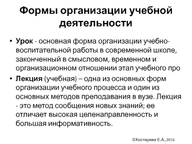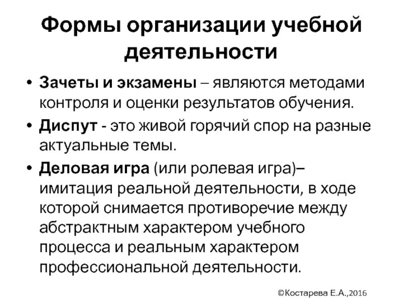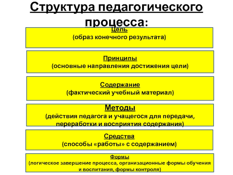 (логическое завершение процесса, организационные формы обучения и воспитания, формы контроля)