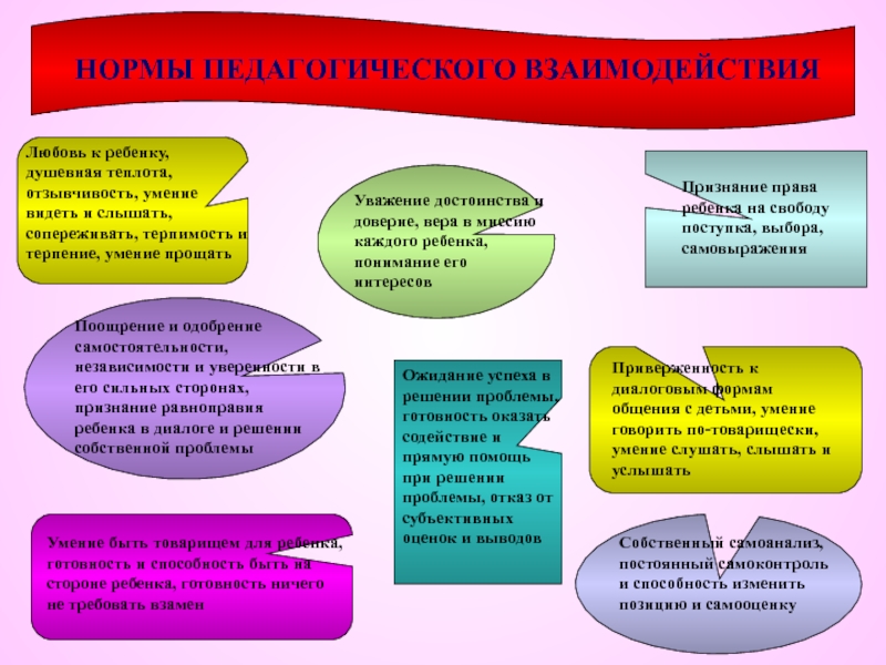 Уважение достоинства и доверие, вера в миссию каждого ребенка, понимание его интересов