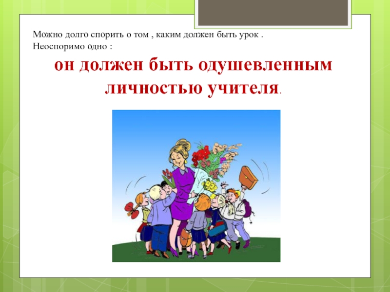 Слайд 26Можно долго спорить о том , каким должен быть урок .
