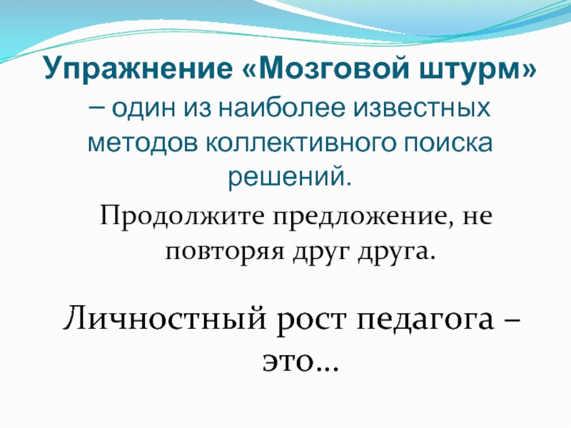 Упражнение «Мозговой штурм» – один из наиболее известных методов коллективного поиска