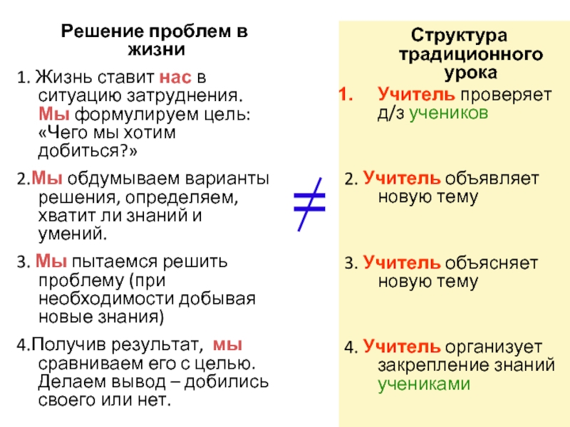 1. Жизнь ставит нас в ситуацию затруднения. Мы формулируем цель: «Чего мы хотим добиться?»