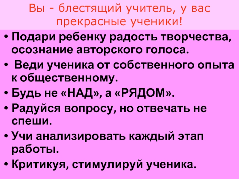 Вы - блестящий учитель, у вас прекрасные ученики!