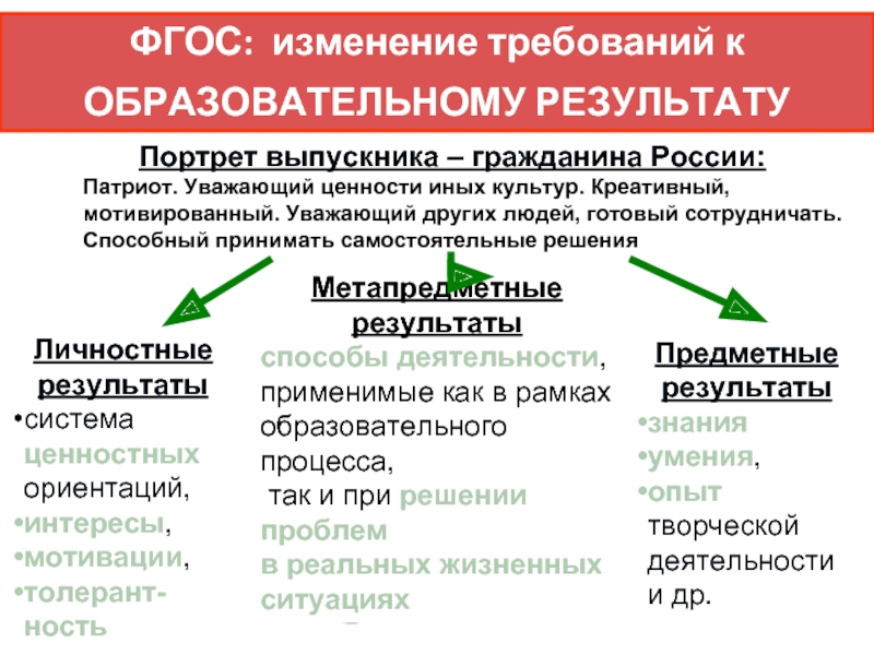 ФГОС: изменение требований к ОБРАЗОВАТЕЛЬНОМУ РЕЗУЛЬТАТУ
