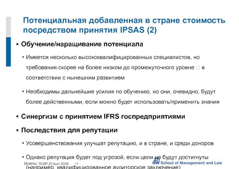 Слайд 17Потенциальная добавленная в стране стоимость посредством принятия IPSAS (2)