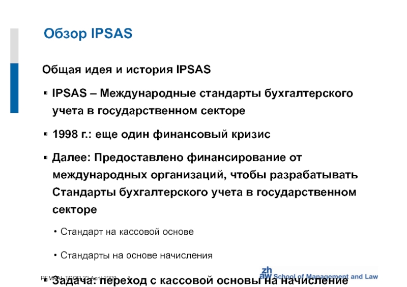 IV Стандарты бухгалтерского учета, как они составлены – сравнение с кассовой основой IPSAS