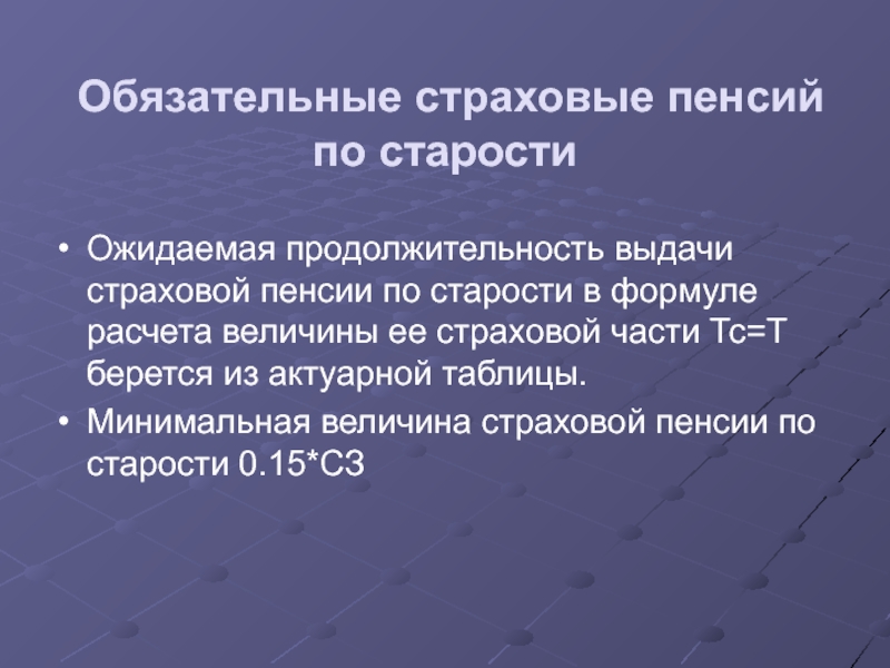 старости в формуле расчета величины ее страховой части Тс=Т берется из актуарной таблицы.