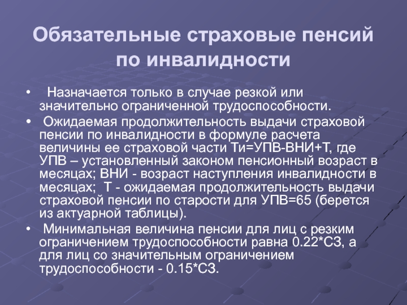 Слайд 15Обязательные страховые пенсий по инвалидности
