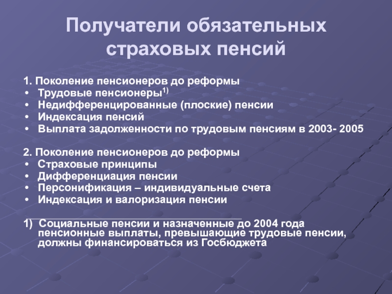 1) Социальные пенсии и назначенные до 2004 года пенсионные выплаты, превышающие трудовые пенсии, должны финансироваться из Госбюджета