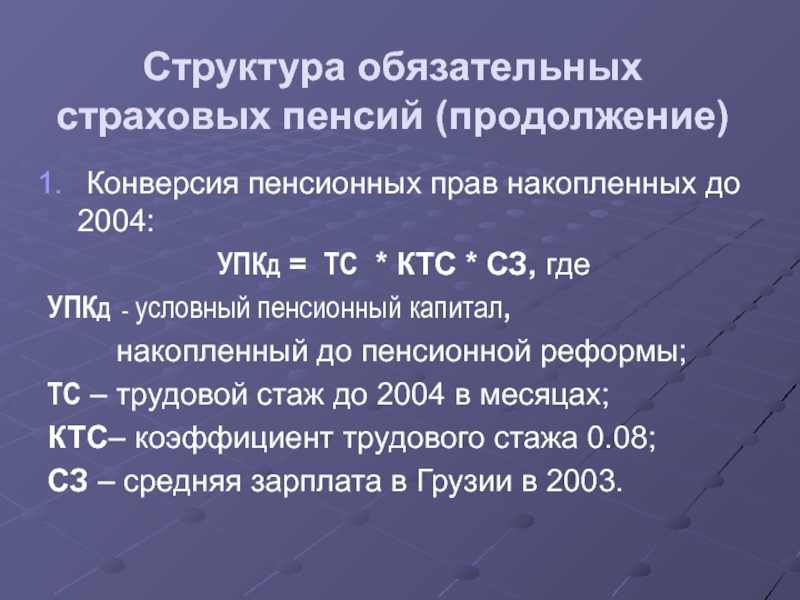 Слайд 13Структура обязательных страховых пенсии (продолжение)