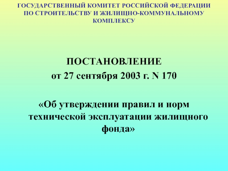«Об утверждении правил и норм технической эксплуатации жилищного фонда»