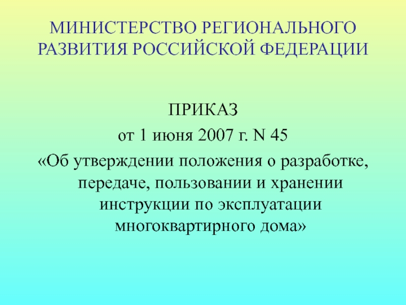 Слайд 18МИНИСТЕРСТВО РЕГИОНАЛЬНОГО РАЗВИТИЯ РОССИЙСКОЙ ФЕДЕРАЦИИ