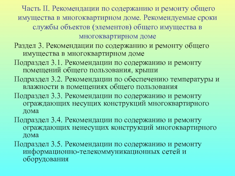 Слайд 27 Часть II. Рекомендации по содержанию и ремонту общего имущества в
