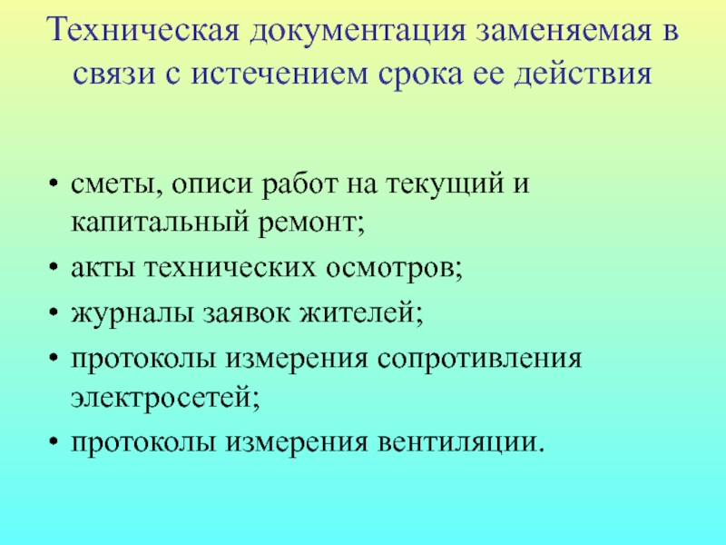 Слайд 17Техническая документация заменяемая в связи с истечением срока ее действия