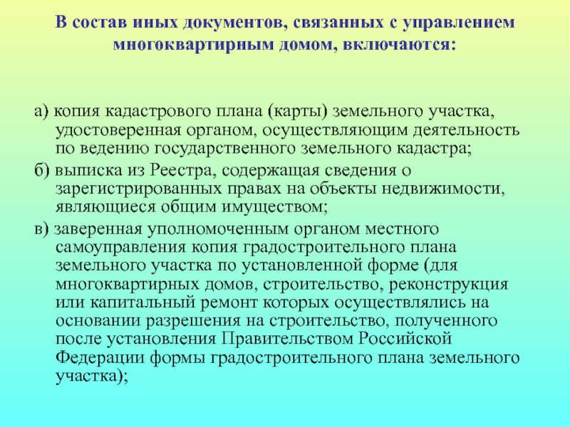 Слайд 11В состав иных документов, связанных с управлением многоквартирным домом, включаются:
