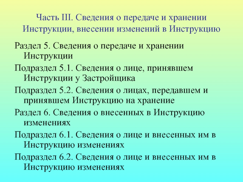 Часть III. Сведения о передаче и хранении Инструкции, внесении изменений в Инструкцию