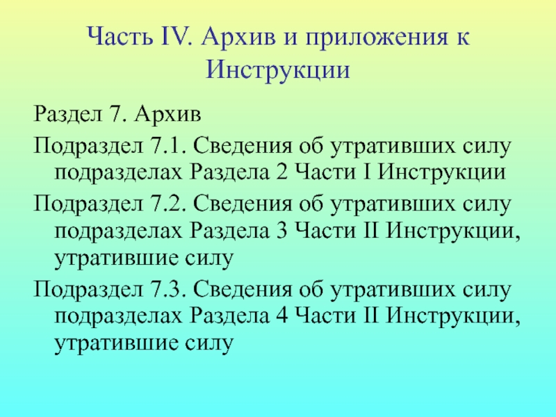 Подраздел 7.3. Сведения об утративших силу подразделах Раздела 4 Части II Инструкции, утратившие силу