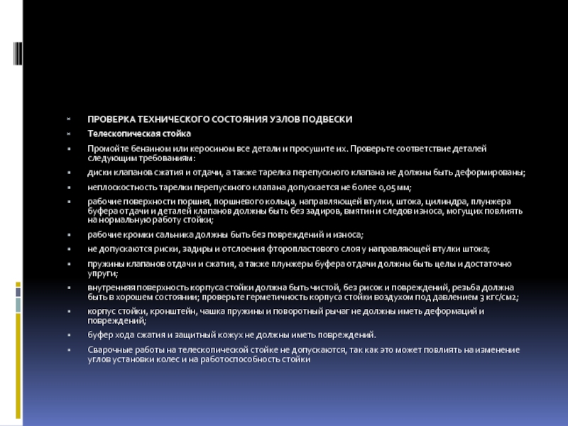 Слайд 15ПРОВЕРКА ТЕХНИЧЕСКОГО СОСТОЯНИЯ УЗЛОВ ПОДВЕСКИ