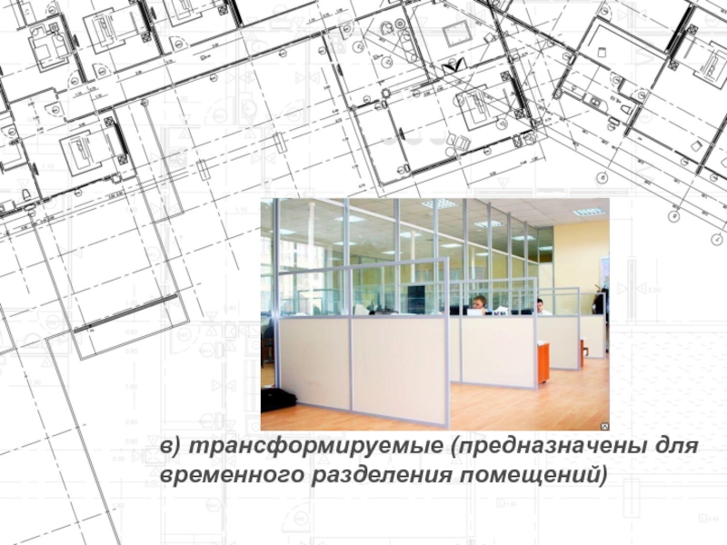 Слайд 13в) трансформируемые (предназначены для временного разделения помещений)
