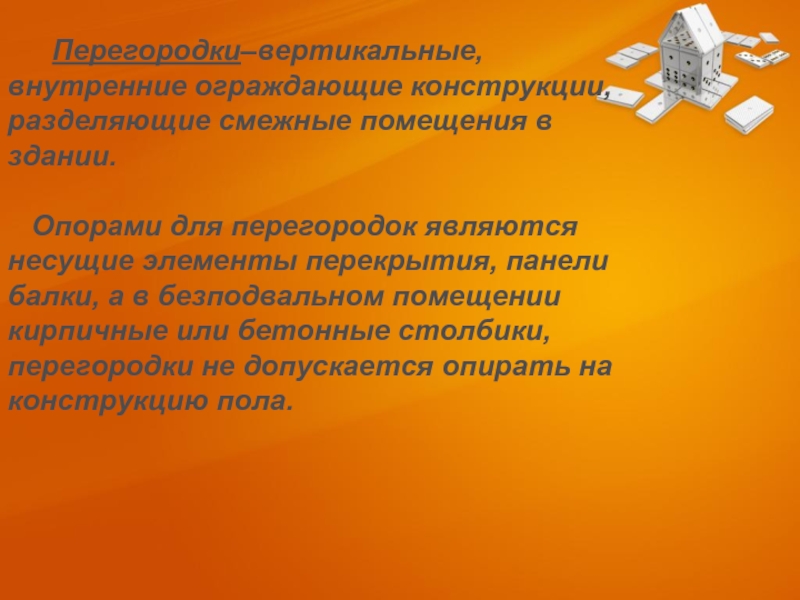 Слайд 2 Перегородки–вертикальные, внутренние ограждающие конструкции, разделяющие смежные помещения в