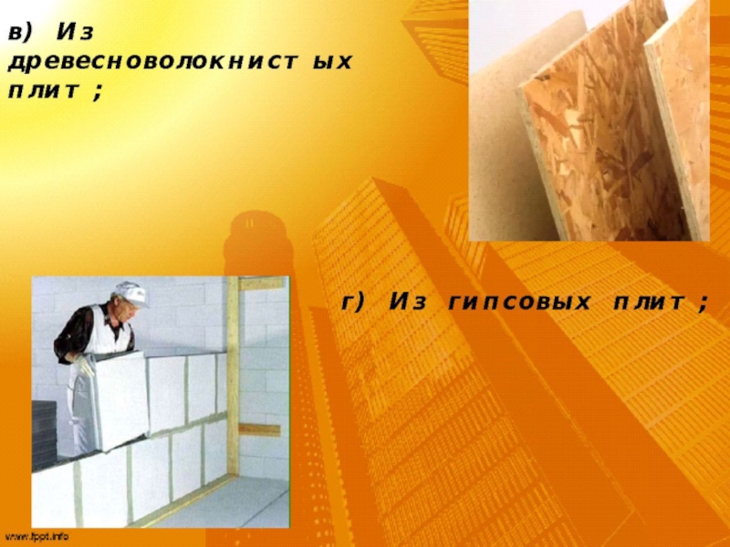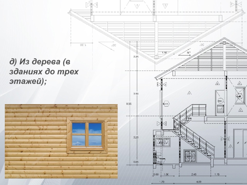 Слайд 8д) Из дерева (в зданиях до трех этажей);