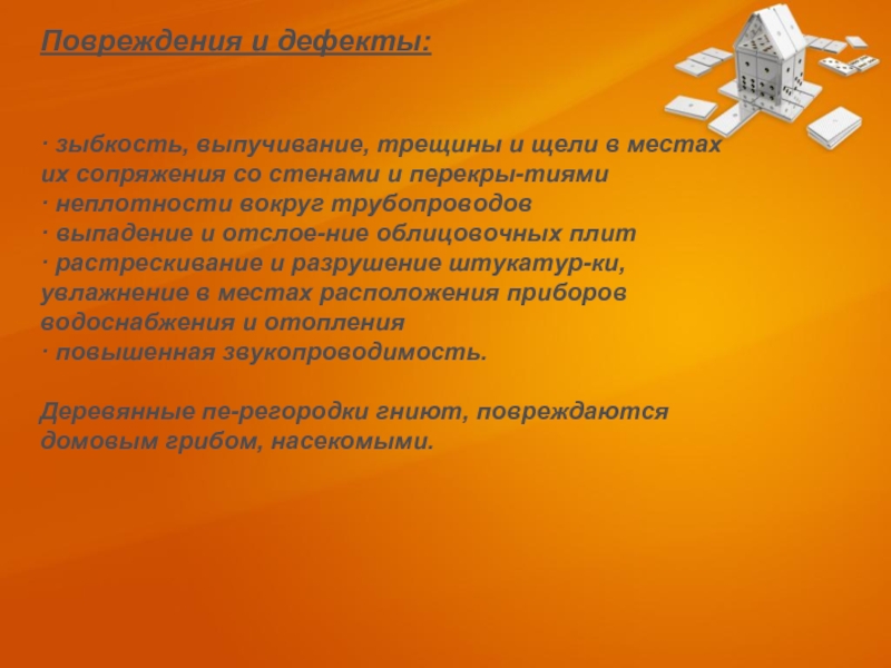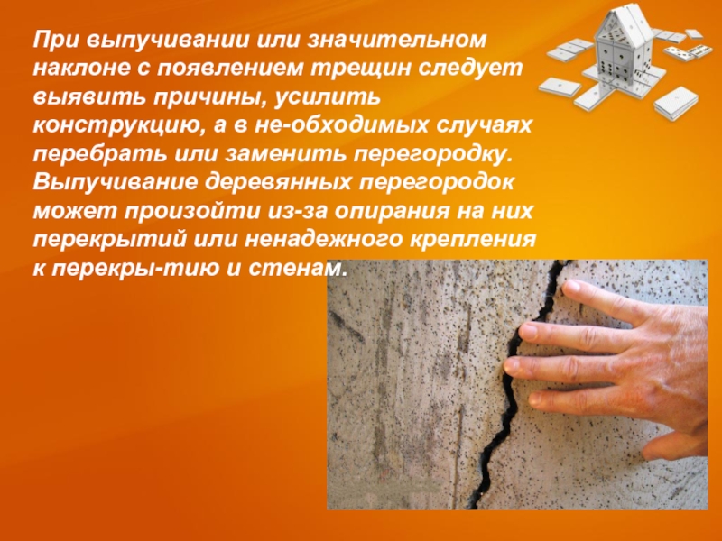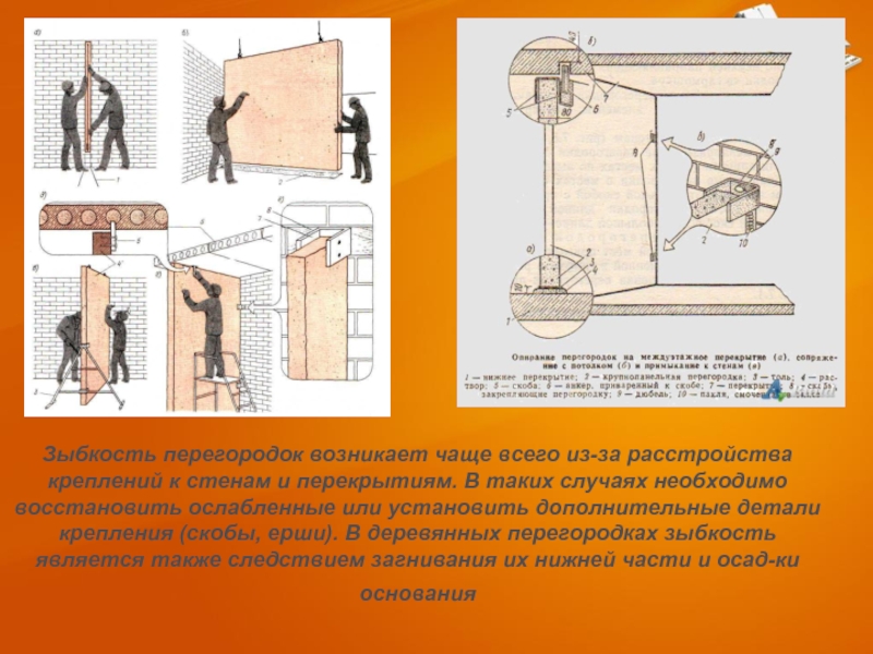 Слайд 19Зыбкость перегородок возникает чаще всего из-за расстройства креплений к стенам и