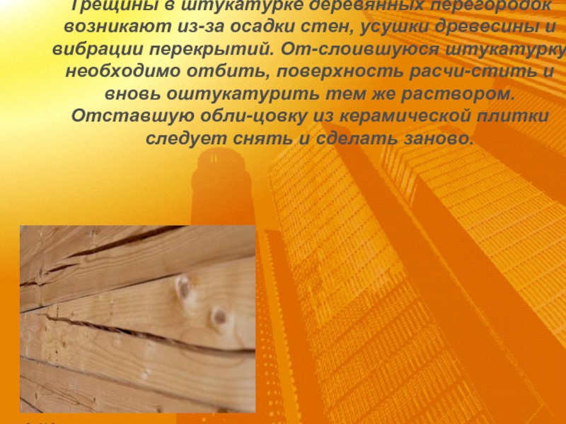 Трещины в штукатурке деревянных перегородок возникают из-за осадки стен, усушки древесины