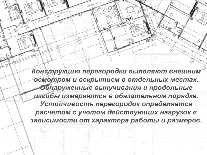Слайд 17Конструкцию перегородки выявляют внешним осмотром и вскрытием в отдельных местах. Обнаруженные