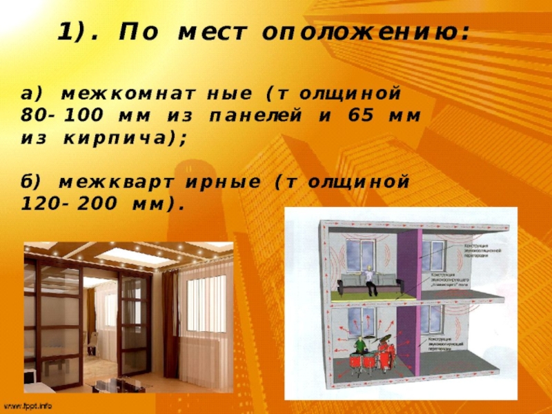 Слайд 18Звукоизоляцию межквартирных перегородок контролируют по